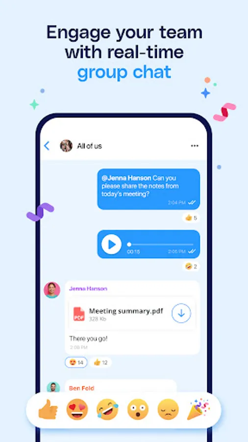 - "It is easy to communicate and use! Everyone on the app loves it!" - Jennifer A. (Administration Manager, 35 employees)