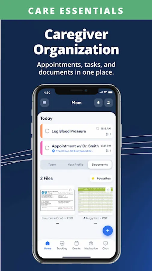 Invite siblings and anyone else involved in caregiving (including paid caregivers) to use the app (free of charge to those you invite). Create a one-stop hub of key info for everyone (meds, doctor lists, health documents like insurance cards). Coordinate care, add members to certain events, and create group chats or direct messages.