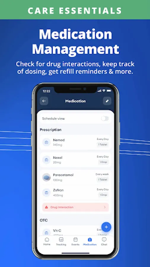 A list of your Loved One’s medication at your (and the Care Circle’s) fingertips. Create automated medication reminders for your Loved One, stay on top of doses & refills, and even be alerted to potentially dangerous interactions between medications.