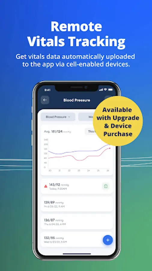 Use the app to manually log your Loved One’s vitals so you can see trends over time. Cell-enabled remote vitals tracking devices are available for just $5/month extra per device (also requires one-time device purchase). Options include: Blood Pressure Monitor; Digital Weight Scale; Pulse Oximeter (to measure Blood Oxygen); Glucometer.