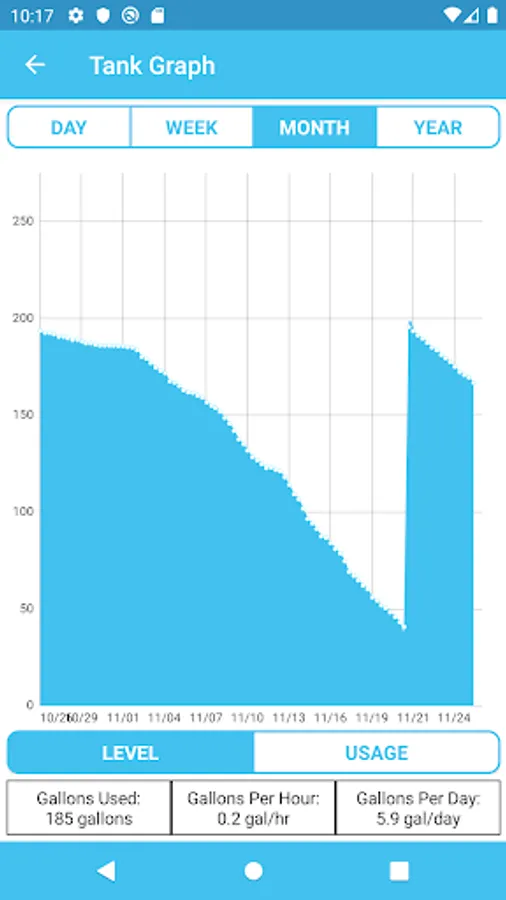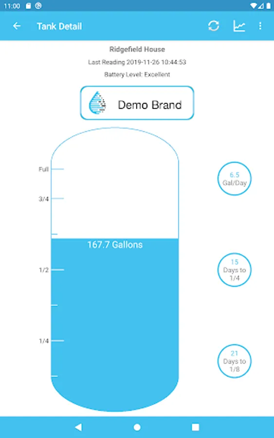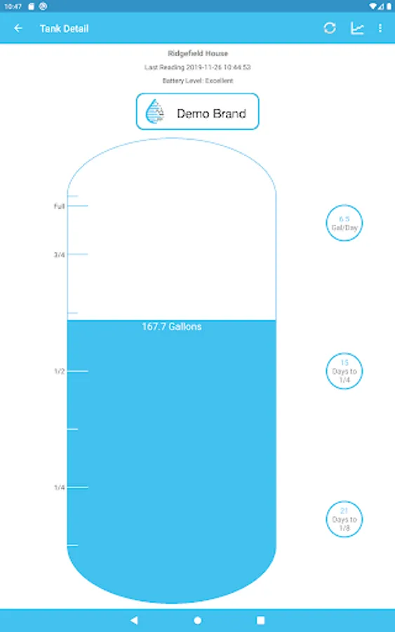 The Smart Oil Gauge Android App allows our users to check their fuel oil levels and usage patterns quickly and easily from their Android device. Users can also manage sensor settings and notification options from the app.