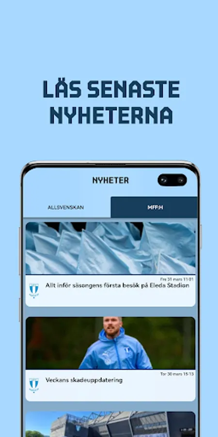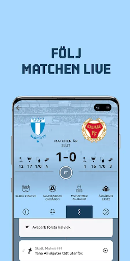 With our official app, you stay up-to-date on everything related to Malmö FF. In the app you can buy and manage your tickets, follow the matches via live updated results and take part in video clips from the matches.