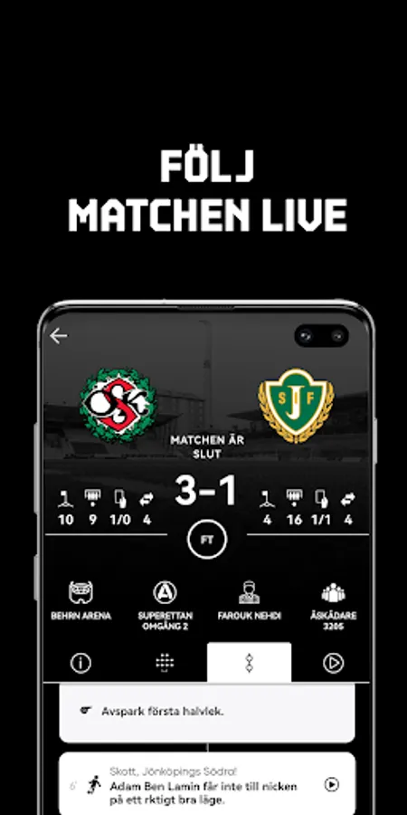 With our official app, you stay up-to-date on everything related to Örebro SK. In the app you can buy and manage your tickets, follow the matches via live updated results and take part in video clips from the matches.