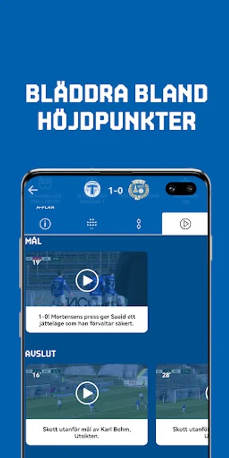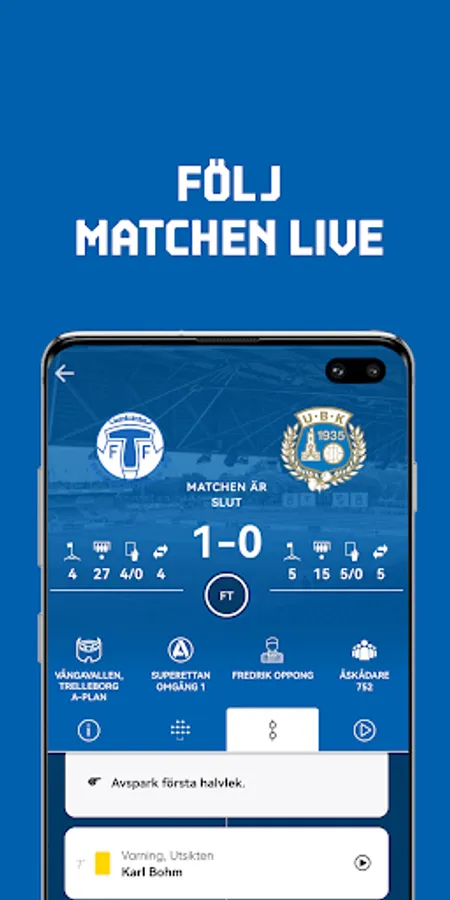 With our official app, you stay up-to-date on everything related to Trelleborgs FF. In the app you can buy and manage your tickets, follow the matches via live updated results and take part in video clips from the matches.