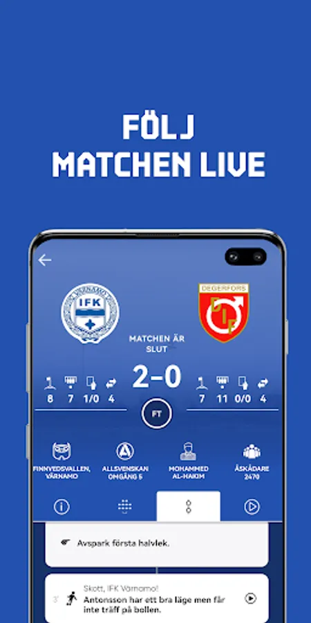 With our official app, you stay up-to-date on everything related to IFK Värnamo. In the app you can buy tickets for the matches, follow the matches via live updated results and take part in video clips from the matches.