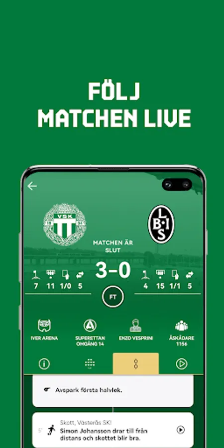With our official app, you stay up-to-date on everything that concerns Västerås SK. In the app you can buy and manage your tickets, follow the matches via live updated results and take part in video clips from the matches.