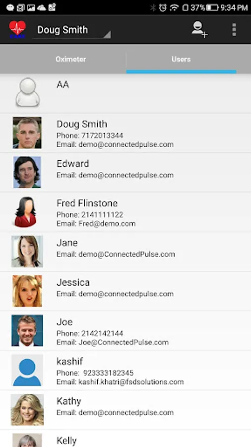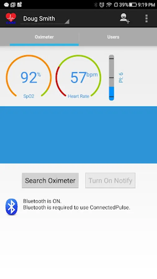 Display NatureSpirit, ConnectedPulse branded Oximeter data and upload to cloud, user account and account member profile management.