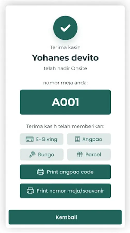 Bagi para peserta atau tamu, penggunaan aplikasi ini sangat sederhana. Mereka hanya perlu membuka aplikasi, memilih opsi "Scan QR Code", dan mengarahkan kamera ponsel ke kode QR yang disediakan. Setelah kode QR terbaca, aplikasi akan segera memverifikasi dan mencatat kehadiran pengguna, memberikan pengalaman check-in yang cepat dan tanpa kesulitan.