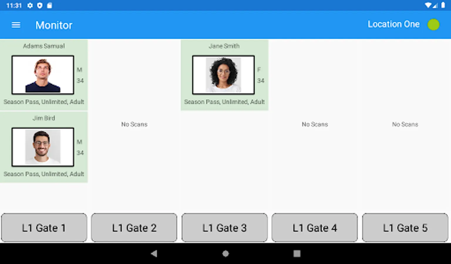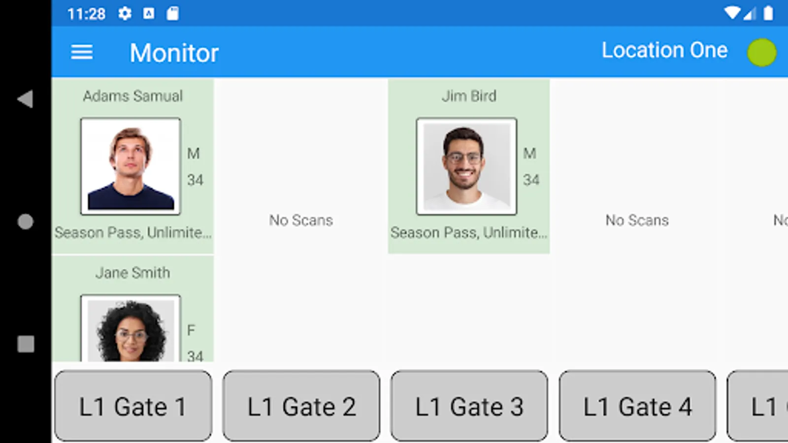 The Go Gate application is used to monitor activity and control gate access at a Scanning Location that is managed by an Axess Gate Server.