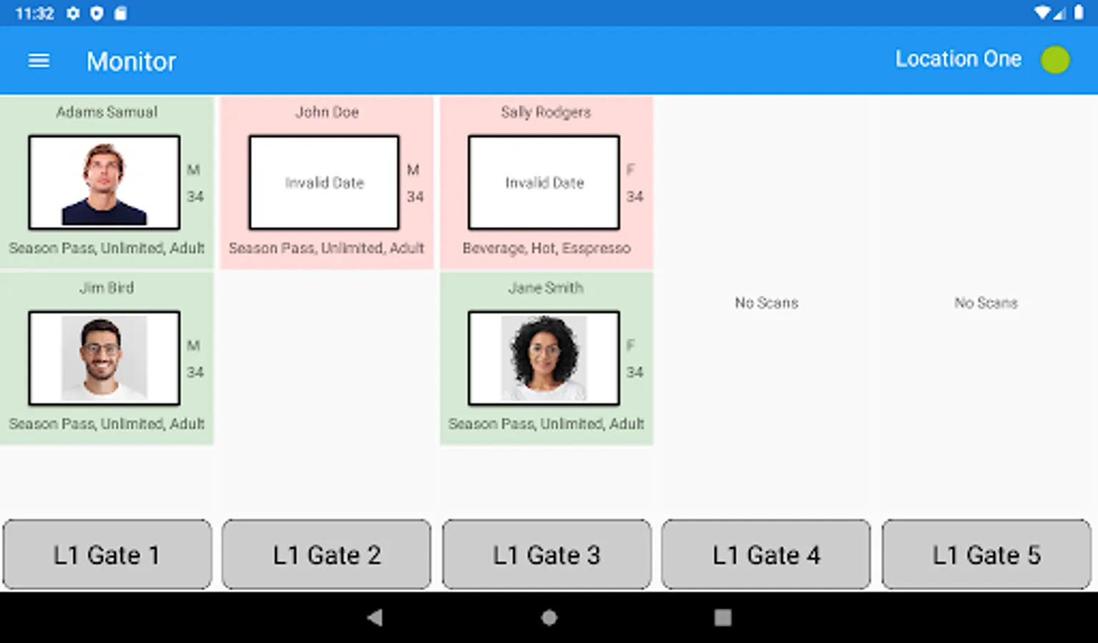 - Select a Scanning Location and monitor all the Scanning Gates at that location.