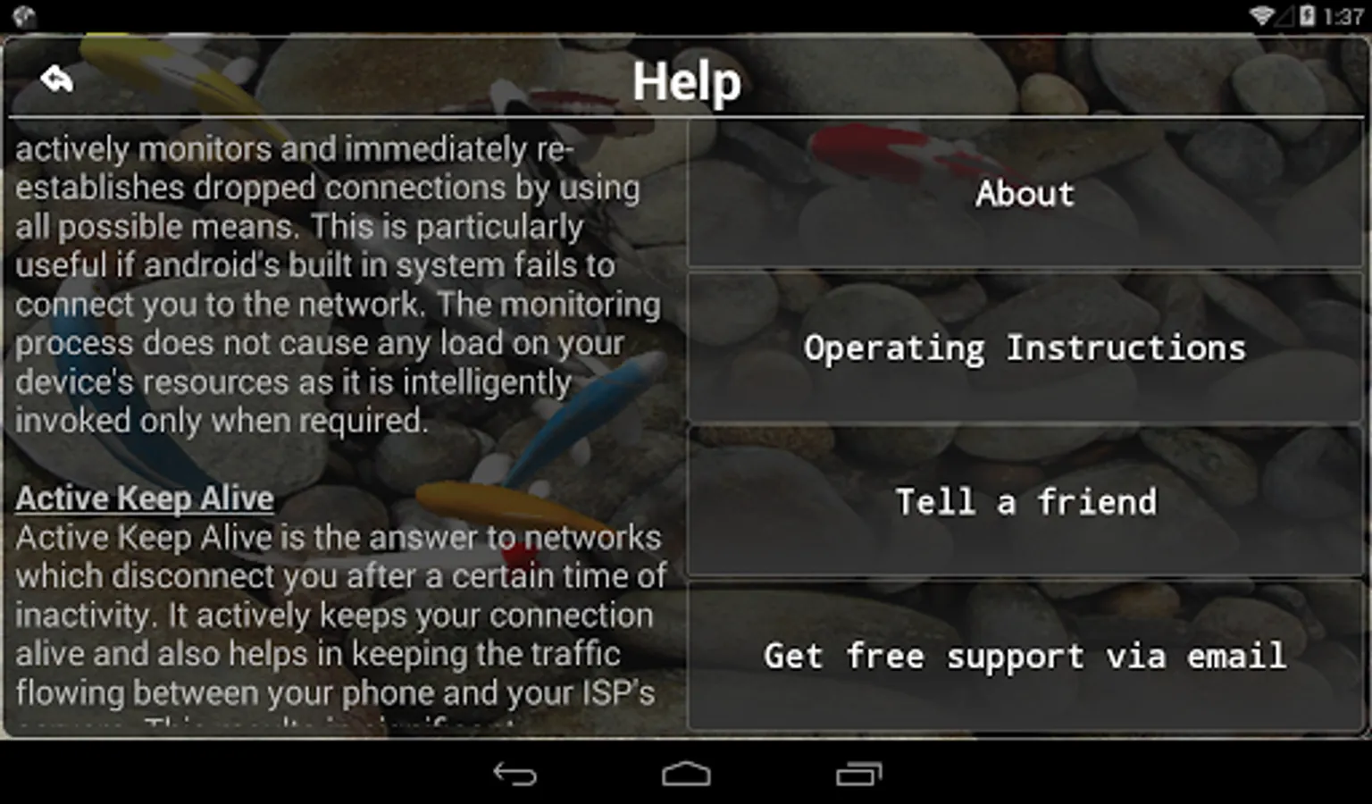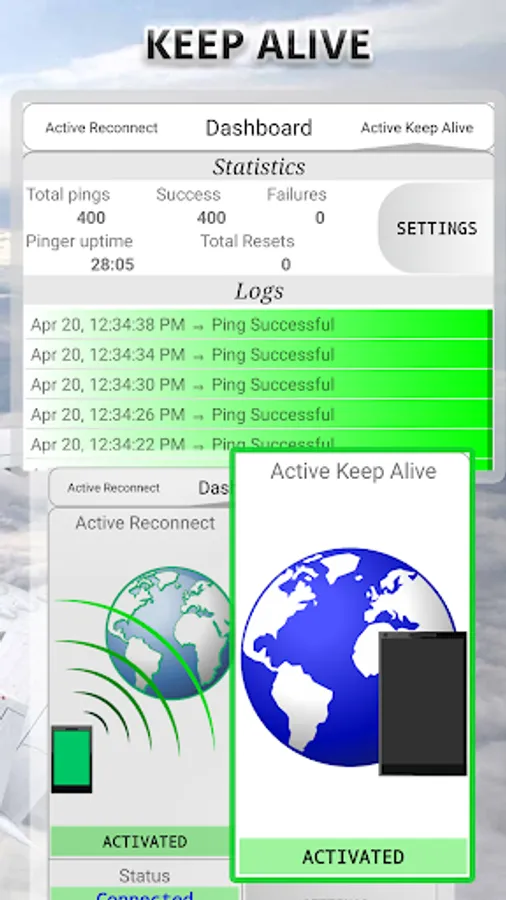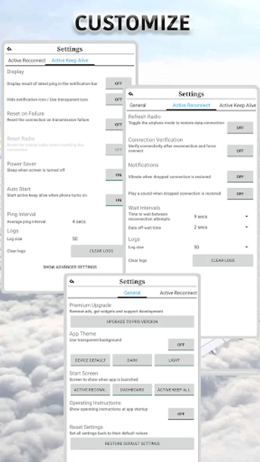 ➤ If your cellular data or WiFi disconnects after a period of inactivity, activate Active Keep Alive. You can adjust the ping interval from the Active Keep Alive settings to find the setting which works best for your network.