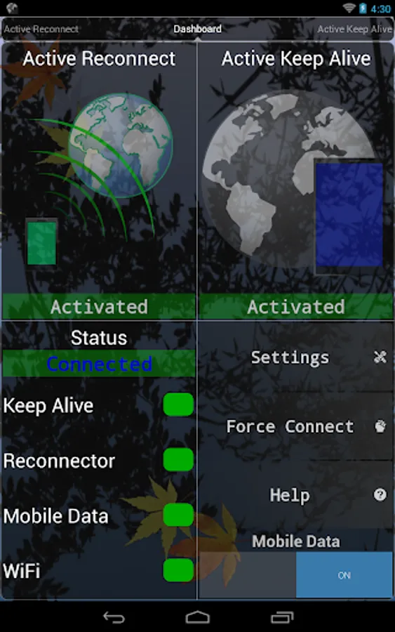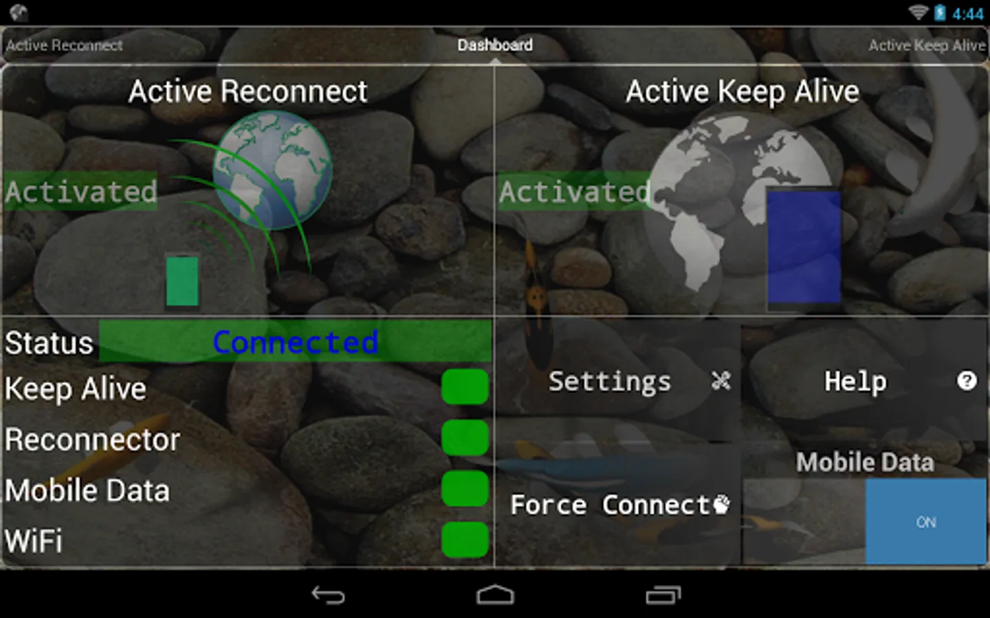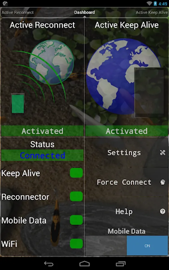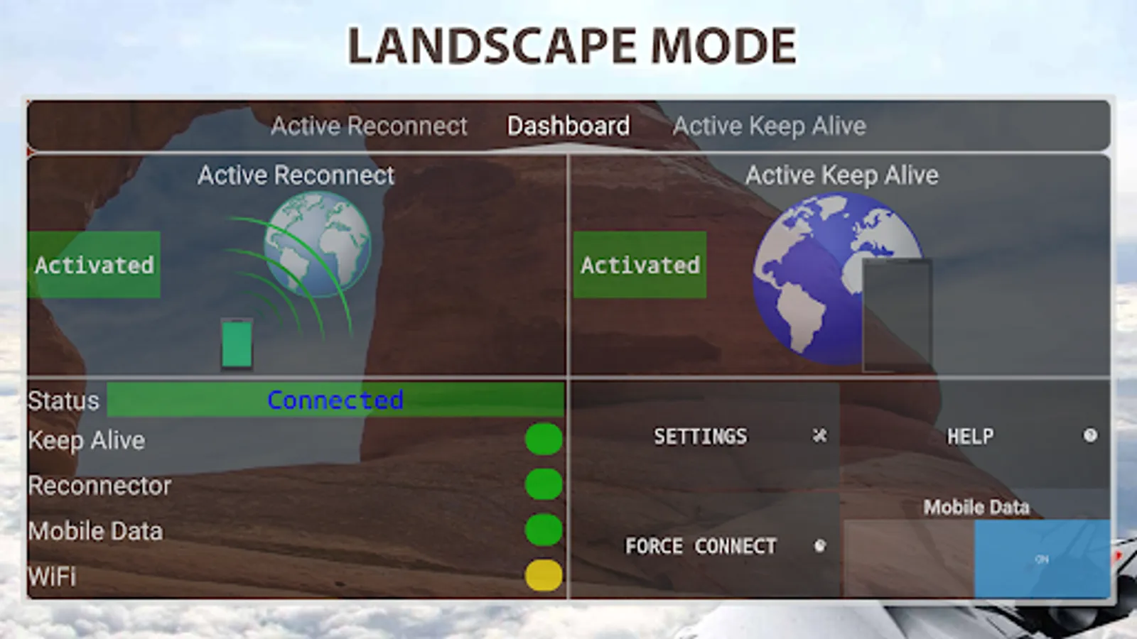 → When Active Reconnect is enabled, don’t turn off the mobile data connection directly from your device. Instead, press the data setting ON/OFF button on the app's dashboard or deactivate Active Reconnect before turning off mobile data from android settings.
