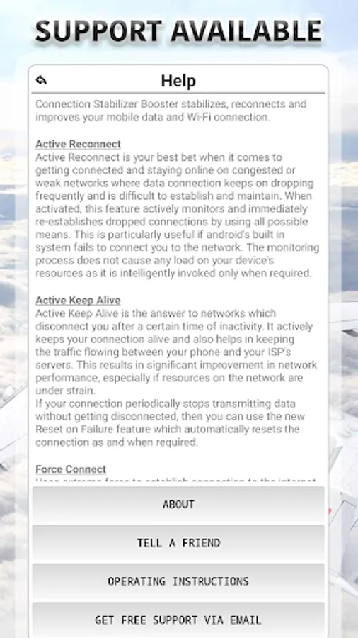 Connection Stabilizer Booster is designed to tackle internet connectivity issues on 2G, EDGE, 3G, HSPA+, 4G LTE, 5G NR and Wi-Fi wireless networks.