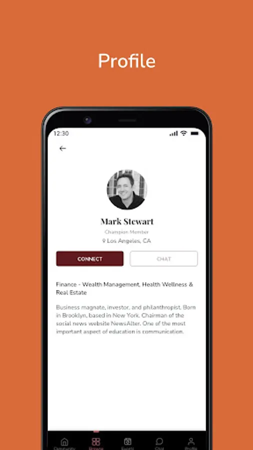 -Connect with and private chat to fellow members