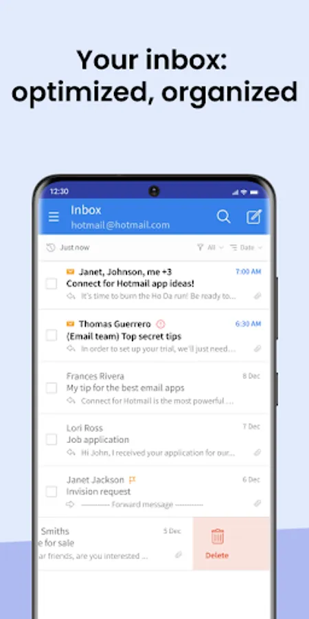 Connect for Hotmail & Outlook gives you easy access to the mail in your inbox and to your calendar - everywhere! This mail app has many advanced features, such as: