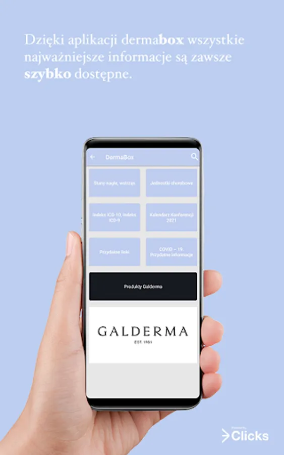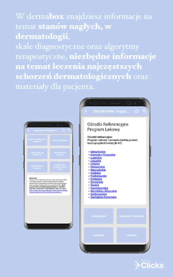 DermaBox is a mobile application based on 3Clicks platform, designed specifically for dermatologists. DermaBox offers quick and intuitive access to essential medical information on diagnostics and treatment of most frequent dermatological diseases.