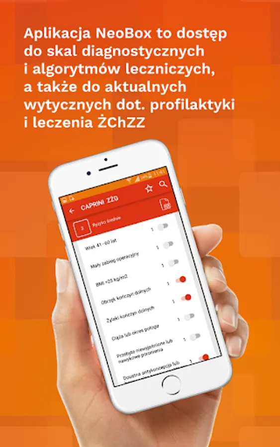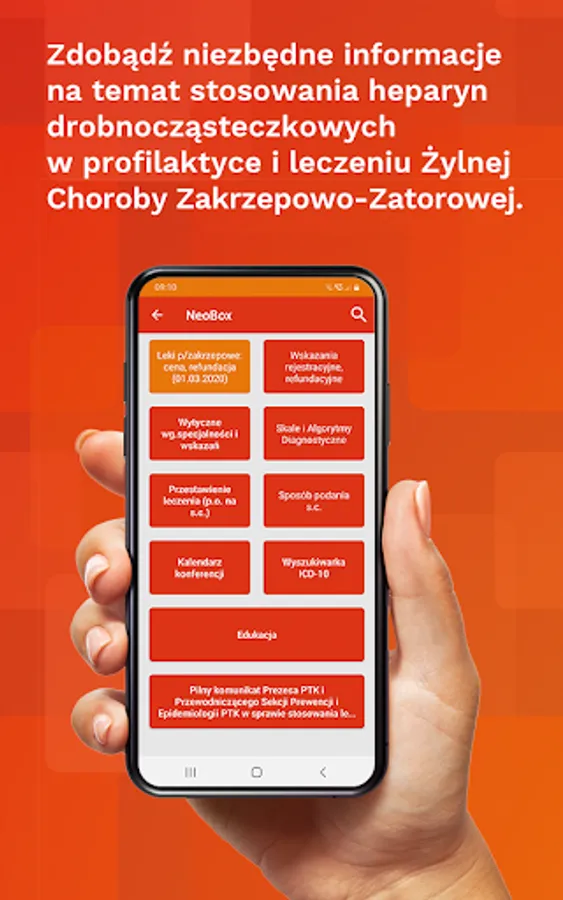 NeoBox is a 3Clicks application for Healthcare Professionals – in particular to GPs, orthopedists, surgeons and internists. NeoBox includes key information on the use of Low molecular weight heparin in prevention and treatment of Venous Thromboembolic Disease.