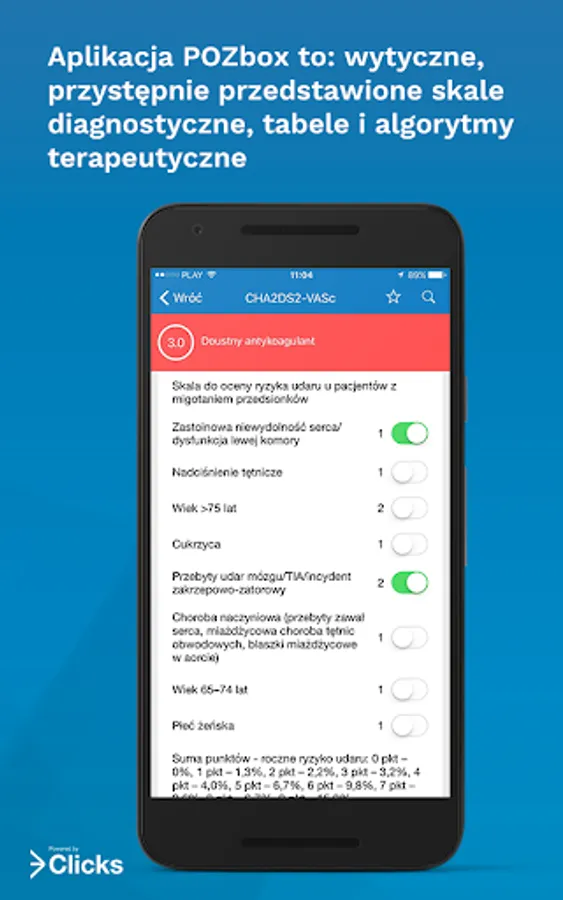 POZbox is an innovative medical app developed in a 3Clicks format, addressed to Primary Care physicians. POZbox offers essential support in the diagnosis and treatment of the most common diseases in a practical format of tables, scales, algorithms and multimedia files.