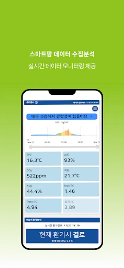 “Connect On” was developed by Farm Connect, an ag-tech company, and is an AI-based specialized cultivation management app that allows real-time monitoring of the inside and outside environment of the facility house farmhouse and customized analysis and management of your own agricultural cultivation data.
