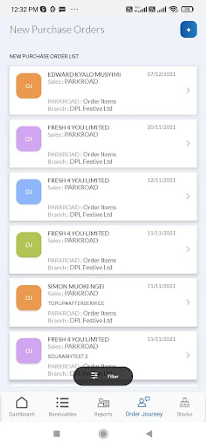 4. Order Journey - Created order by Sales person will be show as list in order journey.