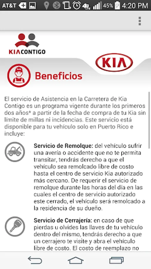 The Service Roadside Assistance Kia Contigo is an ongoing program for the first two years from the date of vehicle purchase unlimited miles *. This service is available for your vehicle only in Puerto Rico.