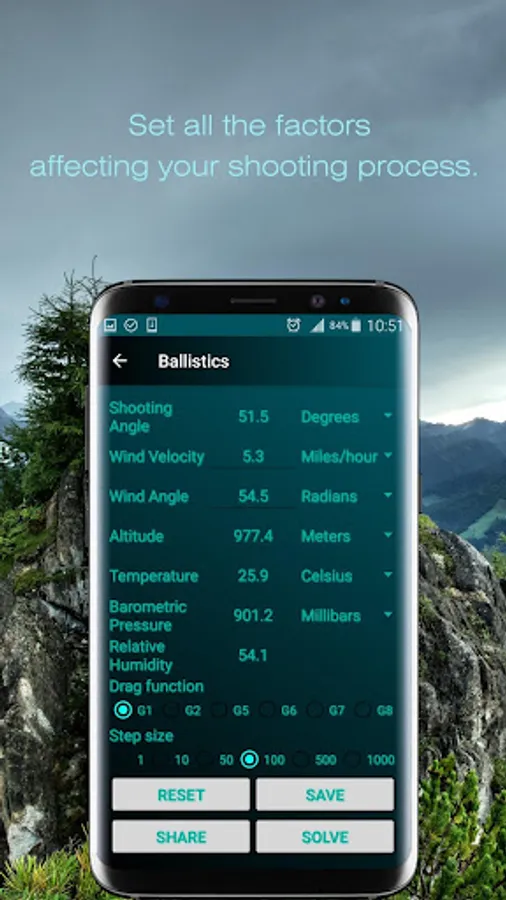 To make use of the application, you can select your rifle and bullet information from the dropdown list or customize the rifle and bullet information specific to you. Once you select the reticle for your scope, you are ready to shoot. Input and output parameters can be set to any international standards.