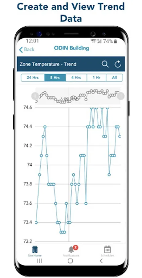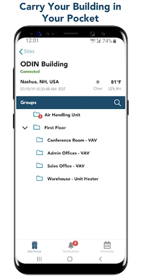 Easily and instantly connect to any BACnet enabled device or BACnet enabled building management system from anywhere, at any time, with a comprehensive, yet simplified user interface. Connect with ODIN is a complementary mobile app to the ODIN server software installed at building sites, which then connects to the cloud for access, continuous updates, storage and backups.