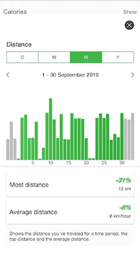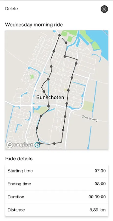 Look at your rides, where and when you've been driving. But also other interesting information such as how much CO2 you have saved with your bike ride compared to a car ride. View statistics on your distance driven, calories burned, CO2 and average speed per day, week, month or year.