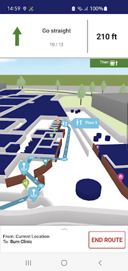 * Points of Interest – Options for dining, vending machines, waiting rooms, shopping, ATMs, restrooms, stairwells, and more located within the hospital.