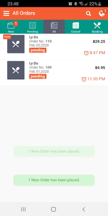 Show new order and booking