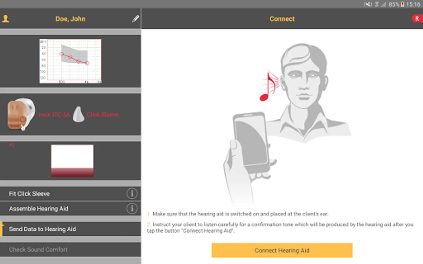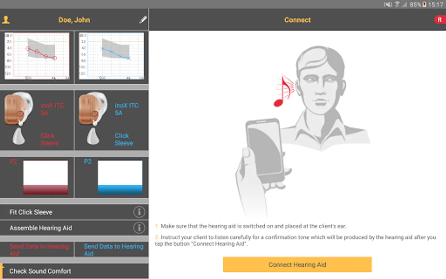 The Fit2Go app is a tool whereby the hearing care professional can adjust comfort functions of a hearing aid within a given framework. It also enables the hearing care professional to personalize the sound.