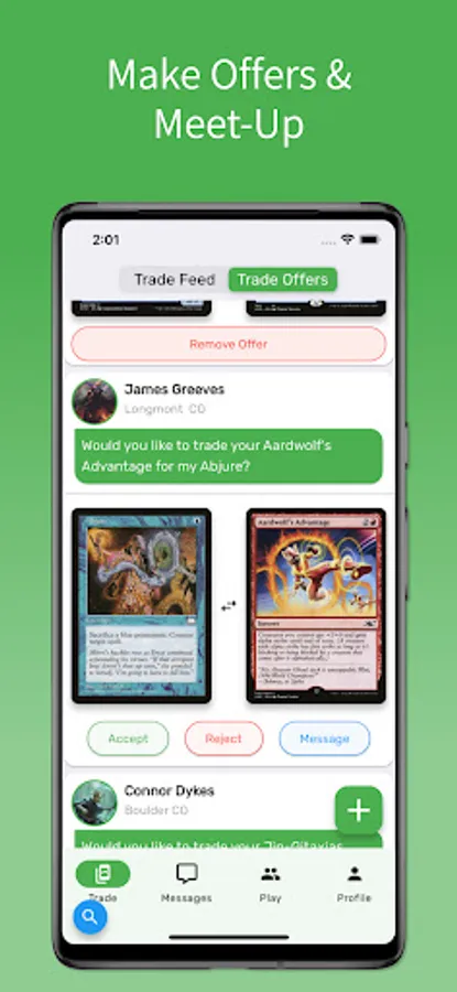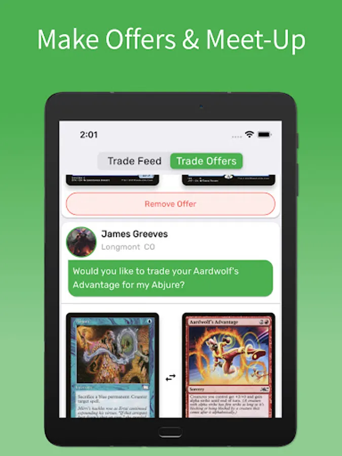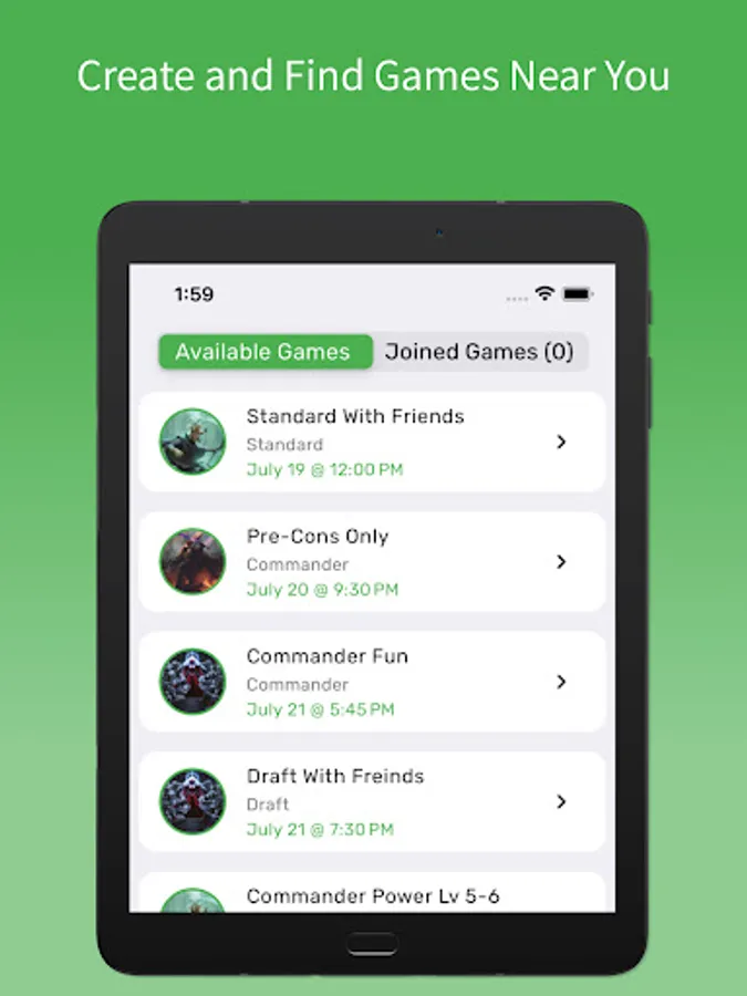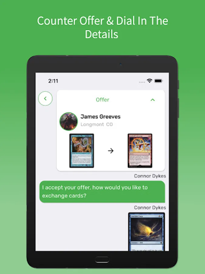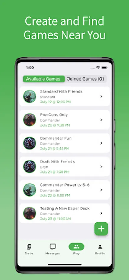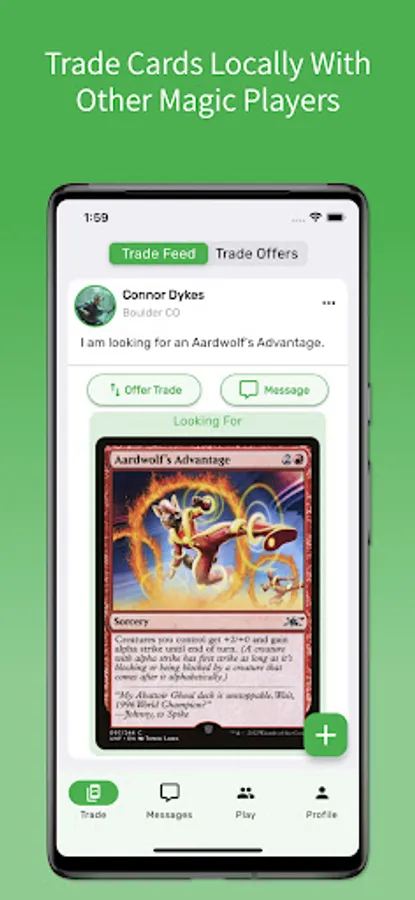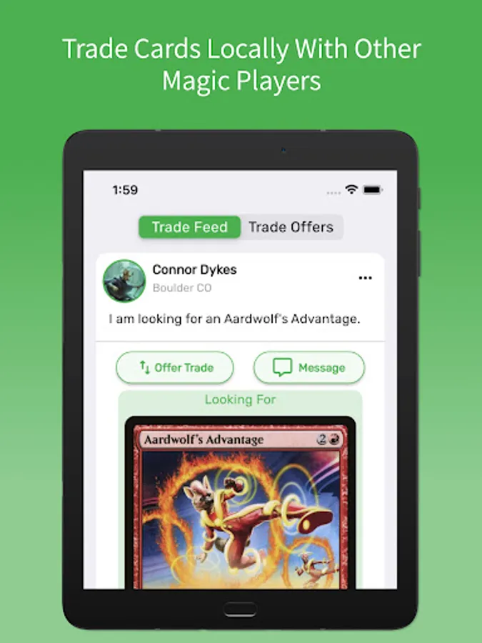 Scry makes it easy to trade cards but allowing you to post about the cards you're looking for or the cards you have and would like to trade. Scry also lets you create and schedule games or see what games have open slots in your area. Never miss out on having the right card and never miss a game of paper Magic.