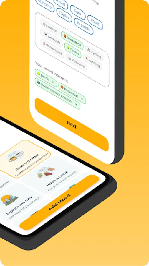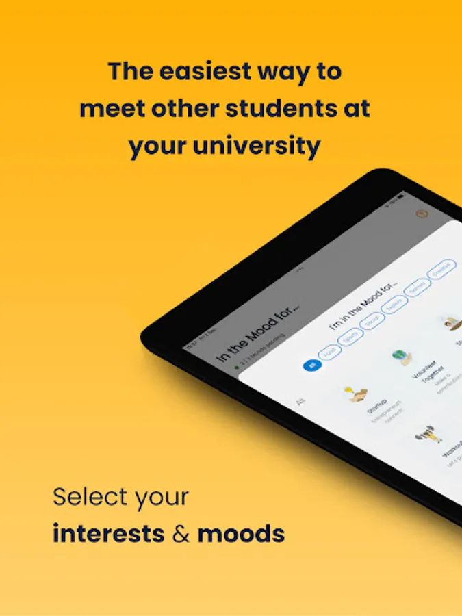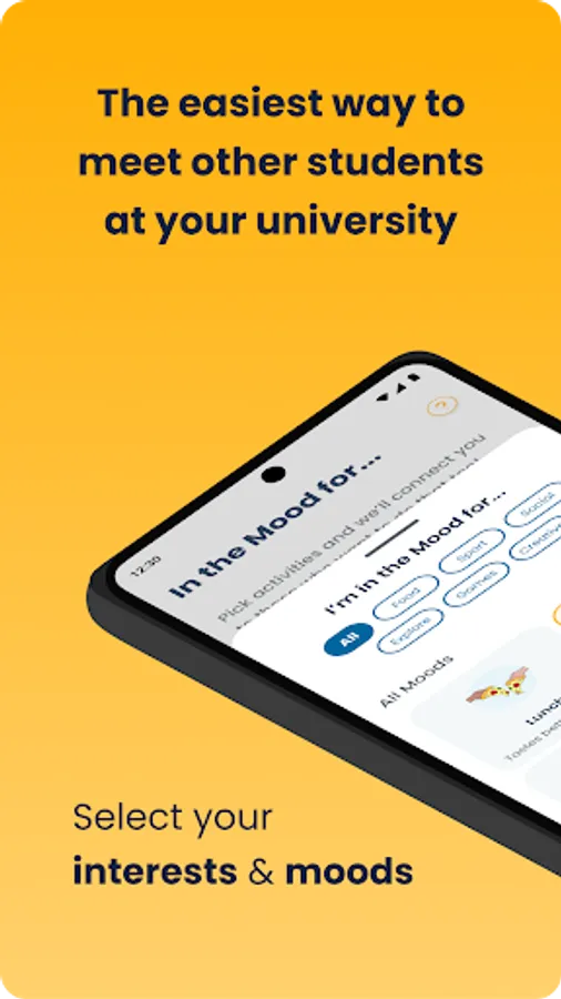 Meet other students from your uni by selecting interests and moods.