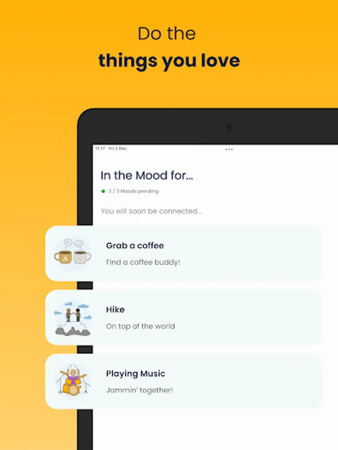 What types of activities are you in the mood for? Find friends who want to do the same and share similar interests.