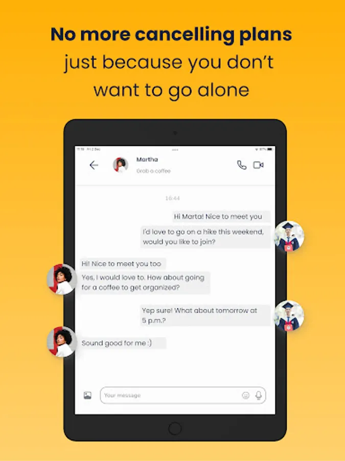 Whether you're an Erasmus student, studying in an unfamiliar city, or attending university in your home town, this app will help you find friends who want to hang out!