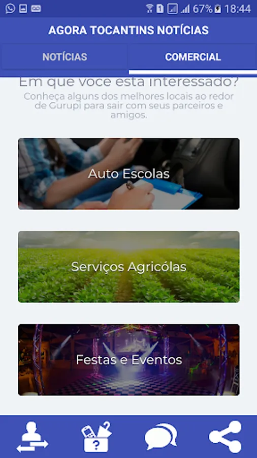 The main differential of Agora Tocantins is that the other portals found on the internet are always focused on just one type of content, while Agora Tocantins has a lot of information in its APP such as: news, trade guide, course schedule, coverage of events, lost and found, classified real estate, vehicles, jobs and more.