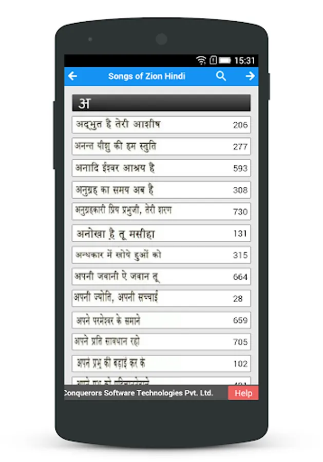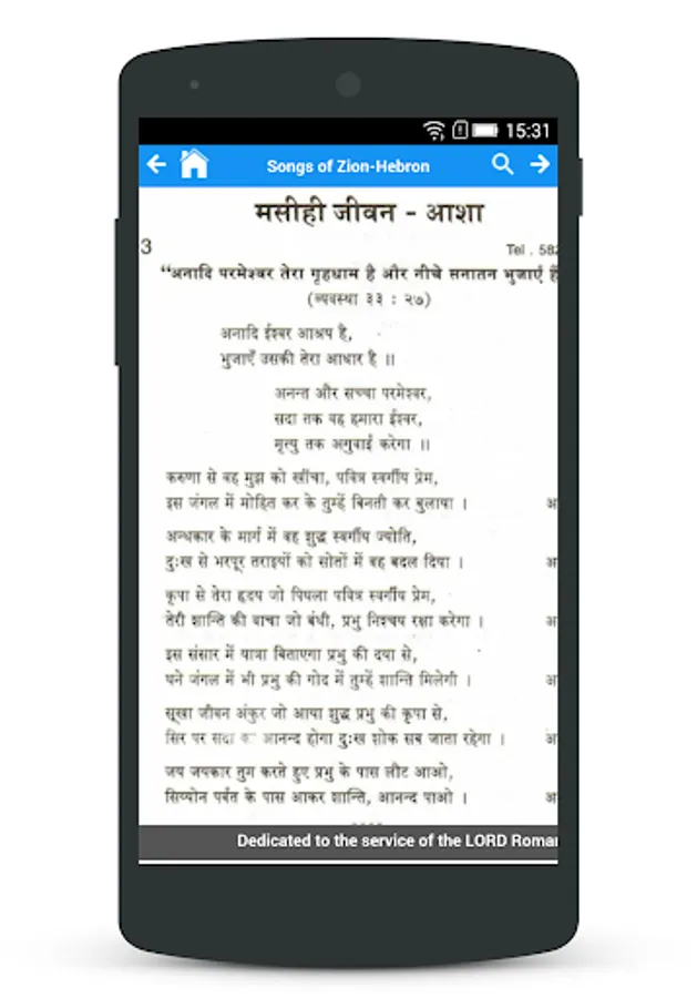 Songs of Zion-Hindi Hebron fellowship Hyderabad, India, Android Application, with Songs of Zion Hindi Youth Book 2011 Edition, Published by Hebron Church, Golconda X Roads, Musheerabad , Hyderabad. You can find 755 songs , very easy to search with song number and song name to select desired song, easy to use, Friendly to carry through you Tablet or Android phone anywhere to Praise GOD all times. You have option to view for larger size.