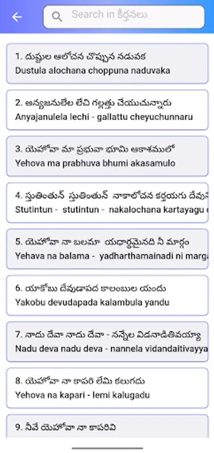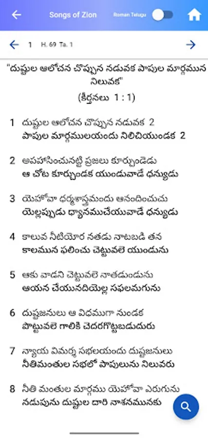 2. Roman Telugu feature added for the benefit of believers who can’t read Telugu to sing along with all others