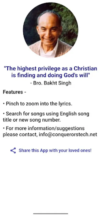This App is not an alternative for Song Book in church. So Kindly carry Song Book to church.