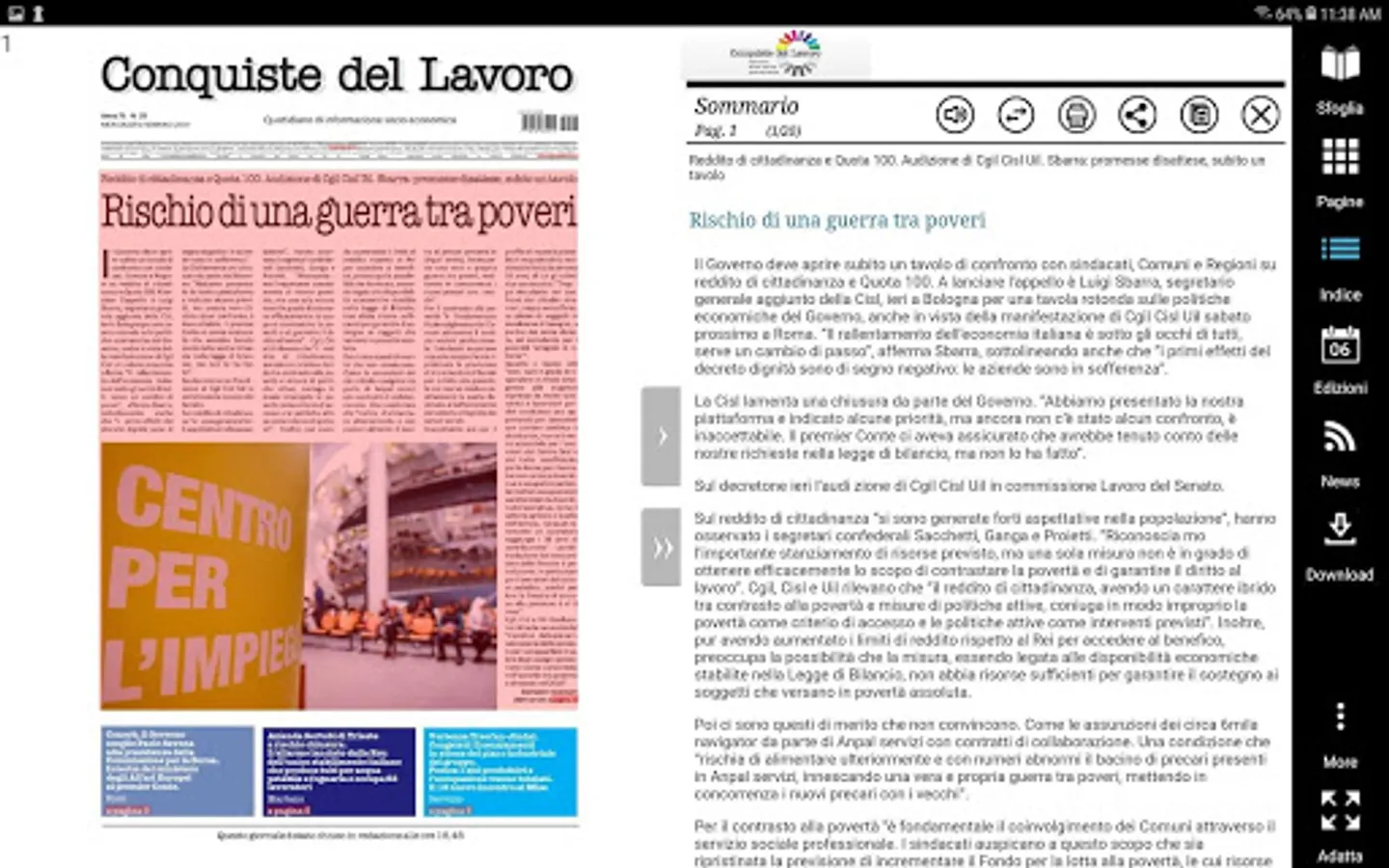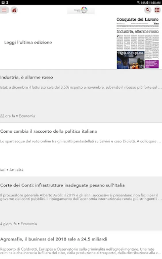 Digital edition of the newspaper Conquiste del Lavoro