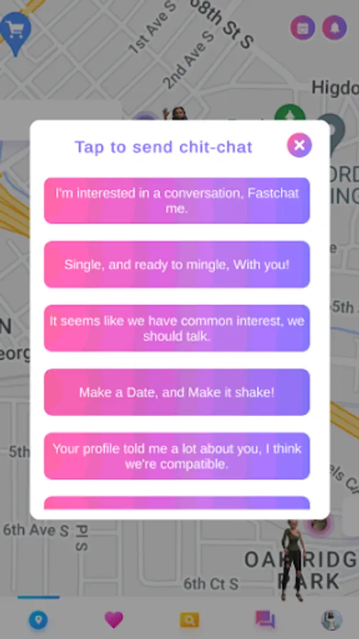 * Always find someone near you with our location marker map. Avatars are displayed on the map in your search area.