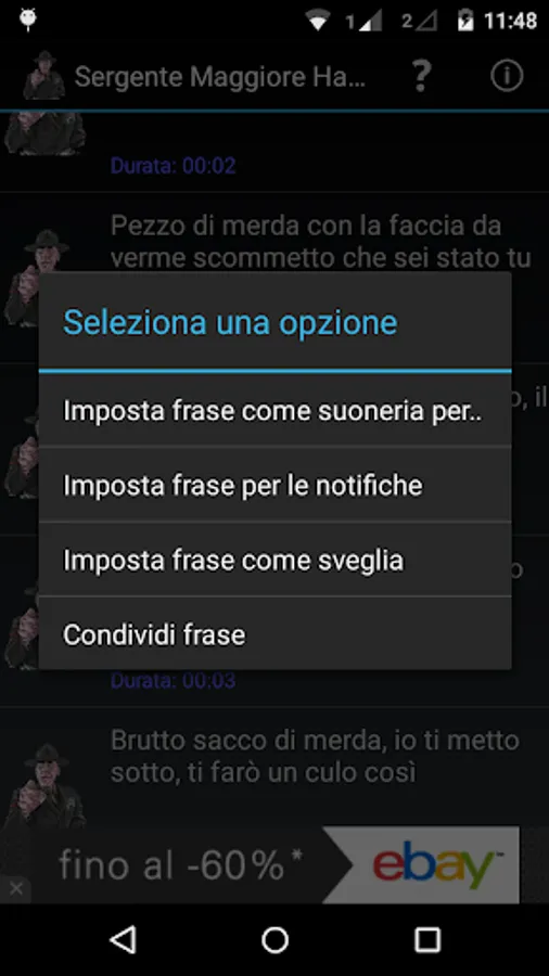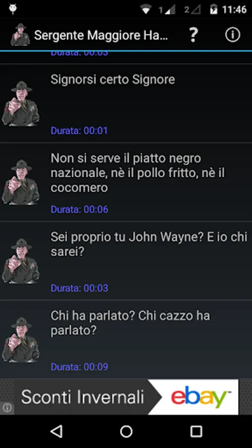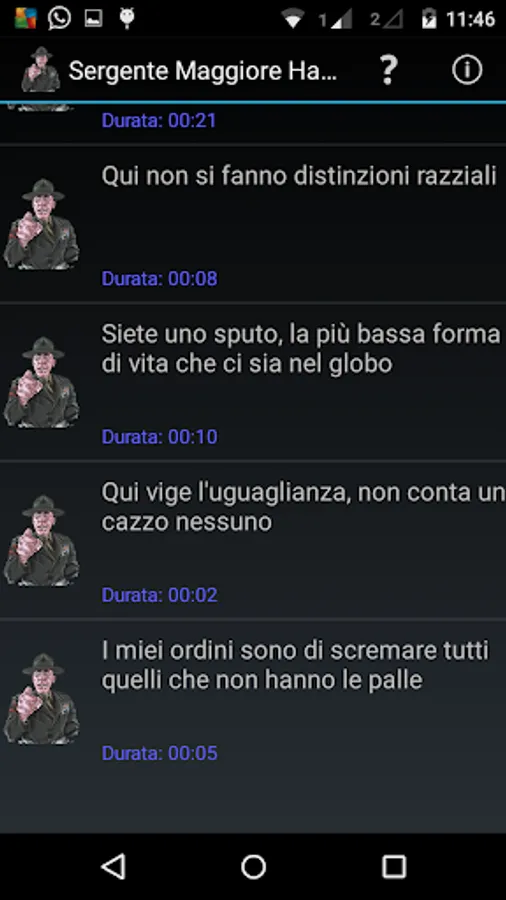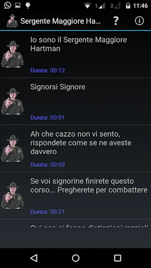 With this app you can listen to the most beautiful phrases of Sergeant Hartman in the film Full Metal Jacket, while seventeen trains young recruits to the Vietnam War.