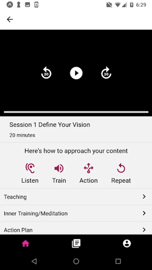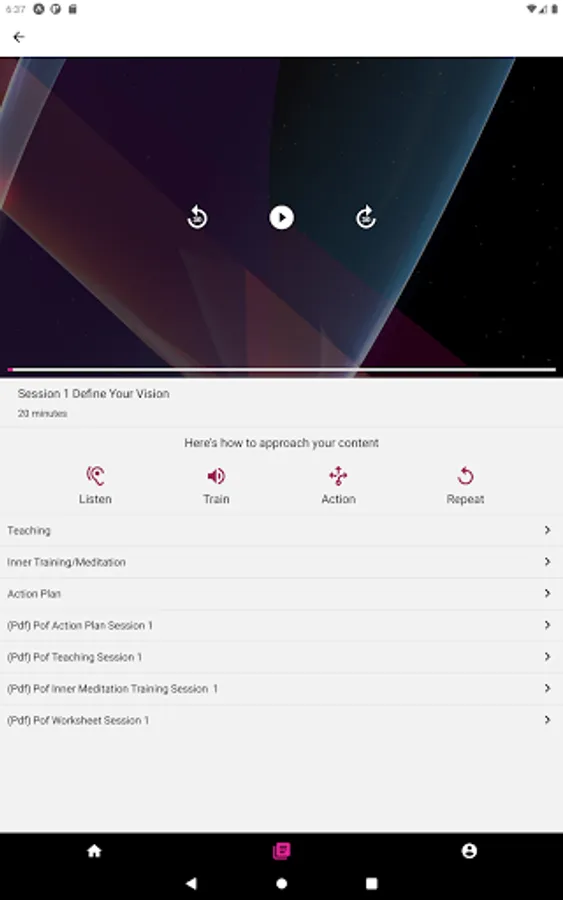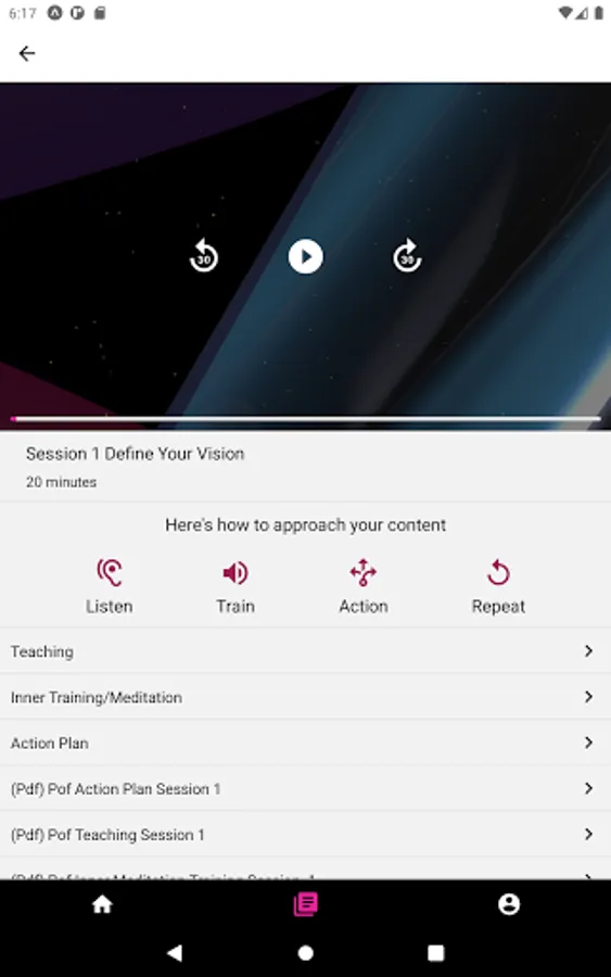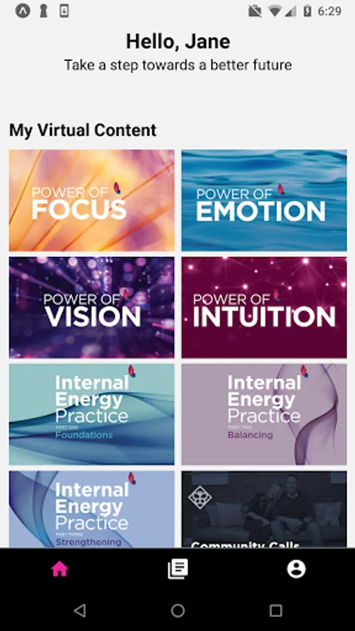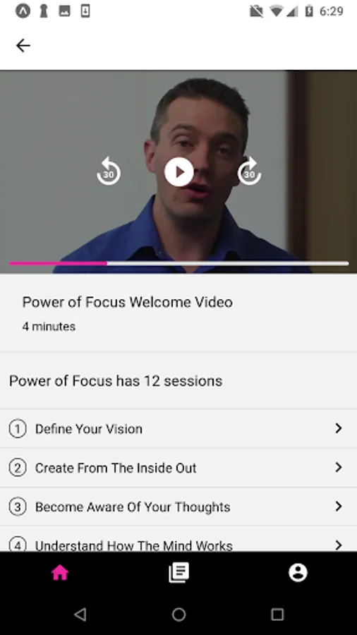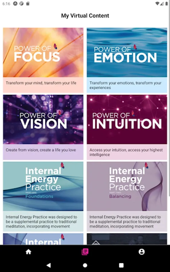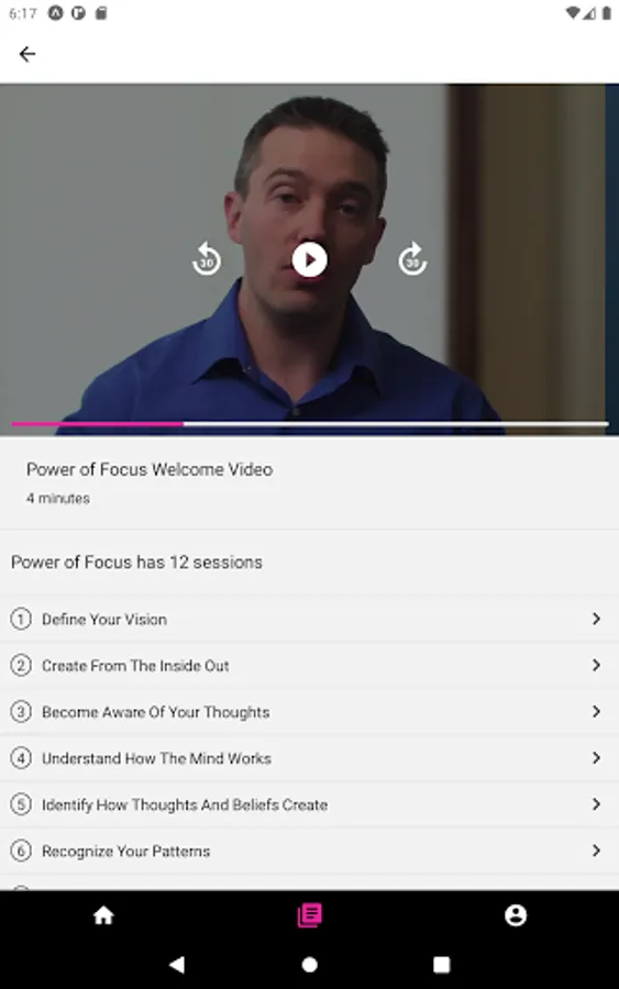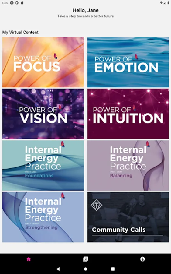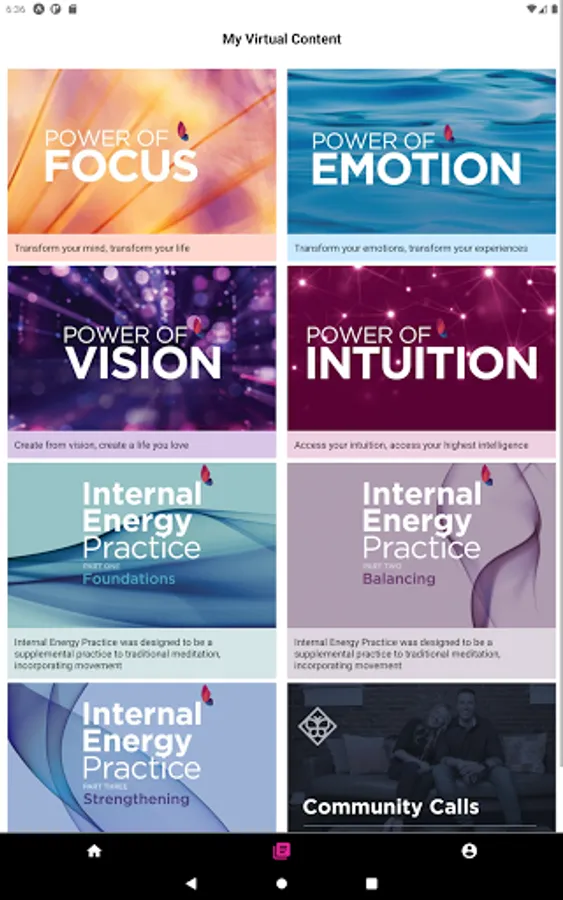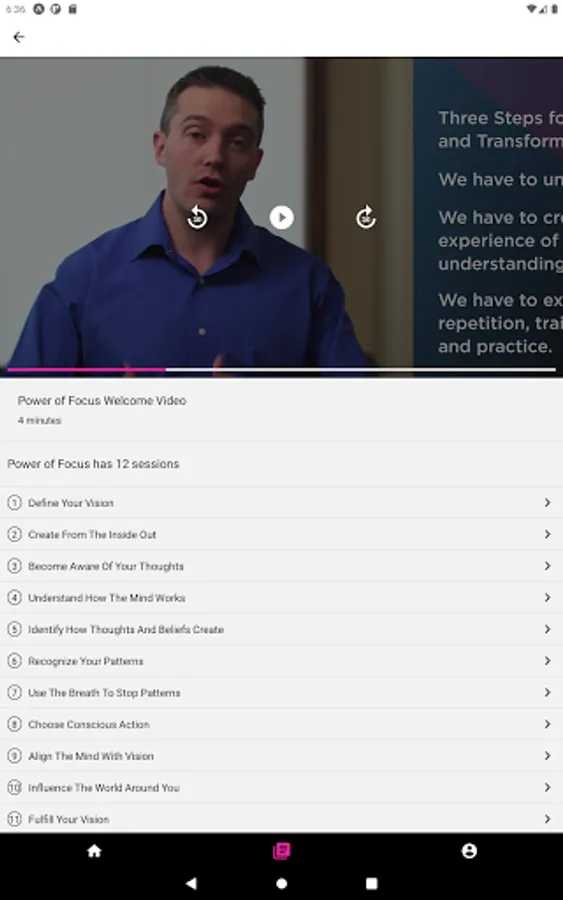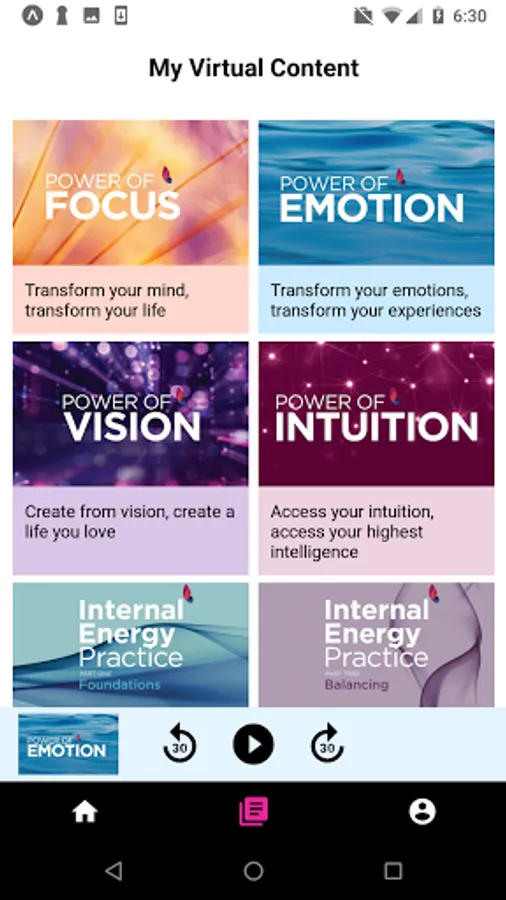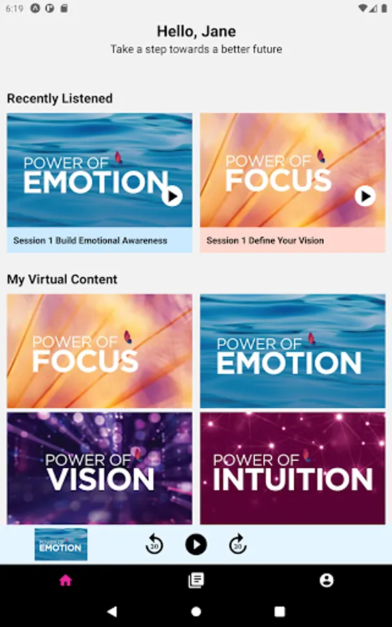 Select any purchased Power Series - Power of Vision, Power of Emotion, Power of Focus, Power of Intuition - and get instant access to the 12 sessions associated with each. Each session includes a training video that explains the training principle for the week, a 20-minute audio guided inner training session, and a short audio daily check-in. The sessions are designed to engage daily.