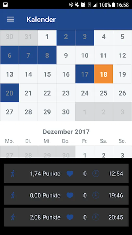 Sports activities can be entered manually or read automatically by Shealth.