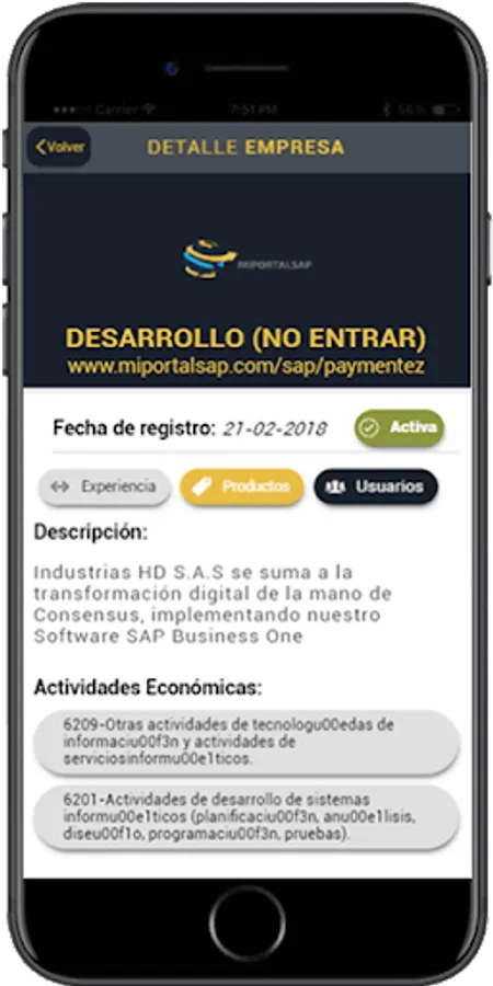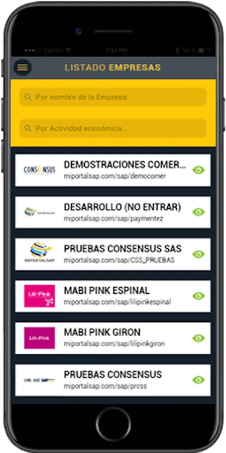 Mobile App that allows interaction between companies and their users, in order to publicize their products and services, bring customers, employees and suppliers closer, contact directly between users, create and view upcoming events, Consensus success stories, news and plus. A product created by Consensus S.A.S your ally in business technology strategy with SAP BUSINESS ONE.
