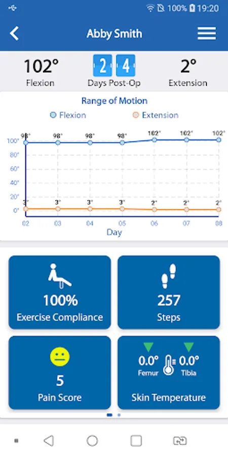 TracPatch is a 24/7 passive and continuous remote monitoring system that captures a patient’s key daily activities, such as range of motion progress and ambulation. TracPatch provides the healthcare provider anytime, anywhere insight into a patient’s recovery, allowing for immediate care adjustments and the ability to get ahead of recovery issues, empowering patients and healthcare providers with real time recovery efficiency.