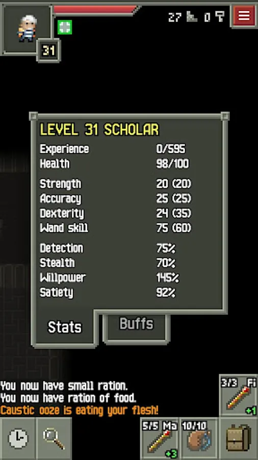 This game is based on the source code of another Android game, Pixel Dungeon. It began as a small project with the goal to improve the original game here or there, but has since gradually grown into something much, much bigger. The games are quite different from each other, so there is no need to play the original game before trying this one (but I would recommend to try it as well, it's good).