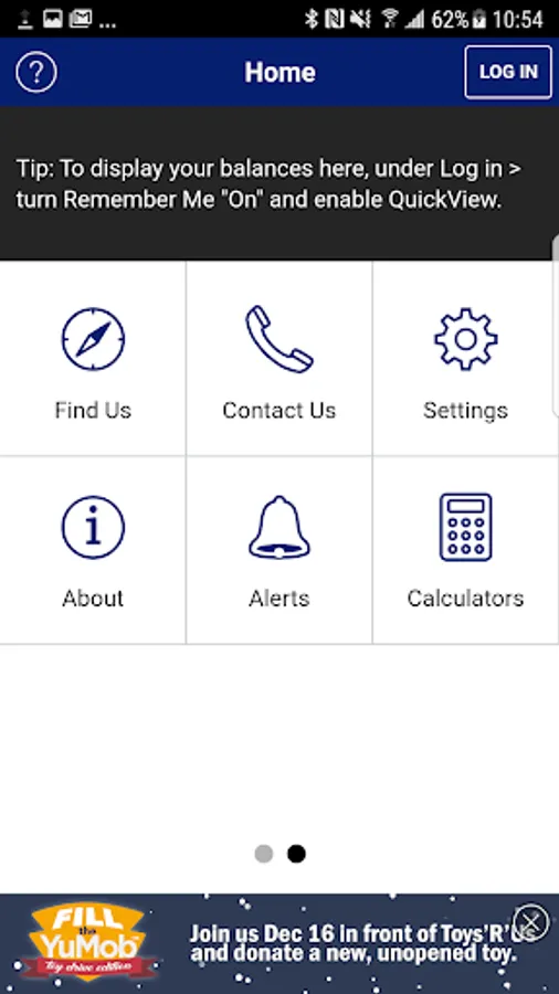 To take advantage of the full functionality of this app, you must already be registered and have logged in to online banking. If you are not an online banking member, you can still use the Branch/ATM locator, Rates and our Contact Us information.