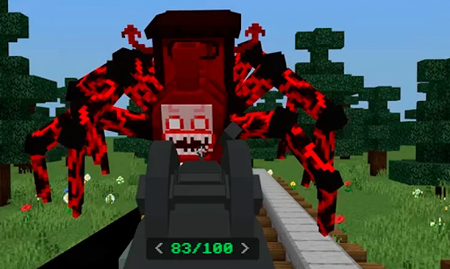 With the help of the mod Choo Choo Charles Horror Train, you may make your mcpe game even scarier. Minecraft's Choo Choo Charlie features a new character in the shape of a train monster or monster spider, or demonic train. Choo Choo Horror Charles must first have the experimental gameplay enabled in the options. The Project Choo Choo Charles adventure is highly intriguing since you can feel an old choo choo charles train in the mcpe world, and this choo choo charles evil spider train can hunt players and catch you.