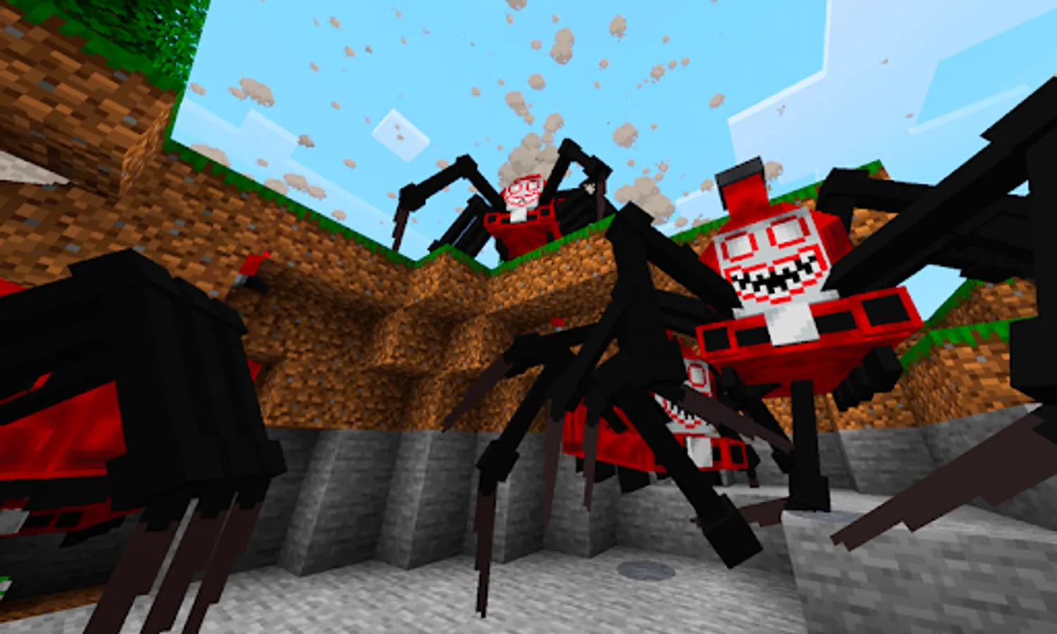 In order to make the Minecraft game even more entertaining and spooky, this Choo Choo Charlies MCPE includes a lot of new features. HORRIFIC MOD Choo Choo Charles is presented in MCPE as an adversary who is constantly pursuing players, adding a sense of terror. In the Minecraft universe, this character will show up holding a train and spider legs, and he will pursue the player until he captures them. To evade the Choo Choo Charles addon and beat him, players must make every effort. For players that enjoy horror and train games, this Choo Choo Charles mod for MCPE is a great option.